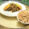 Vegetable stew with beef – Beef with eggplant, cabbage, spinach and carrots.